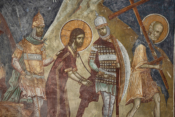The Cycle of Christ’s Passion, also painted in the sanctuary and the nave, is rich in numerous scenes. In addition to the two great cycles, the cycle of the Mother of God is also painted in the Kučevište church, since the church was initially dedicated to the feast of the Presentation of the Mother of God. Underneath the narrative scenes, a row of busts of holy martyrs is painted, and in the lower zone are the standing figures of saints. Pillars are not painted with any figures, but are simply painted red.